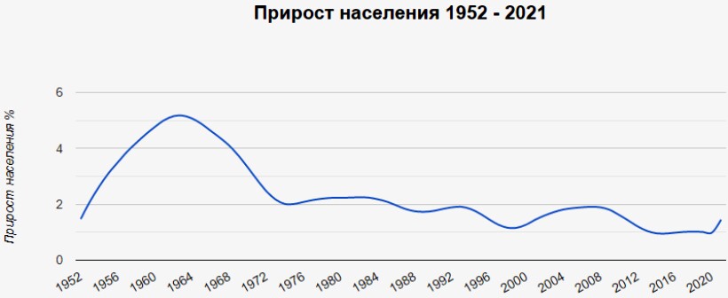 Для Багамских островов характерен ежегодный положительный прирост населения: с 1950-го года число жителей государства увеличилось почти в 5 раз — с 79000 человек до 402000. Максимальный уровень прироста наблюдался в 60-х гг. XX века, его показатель достигал 4,5–5 % в год.