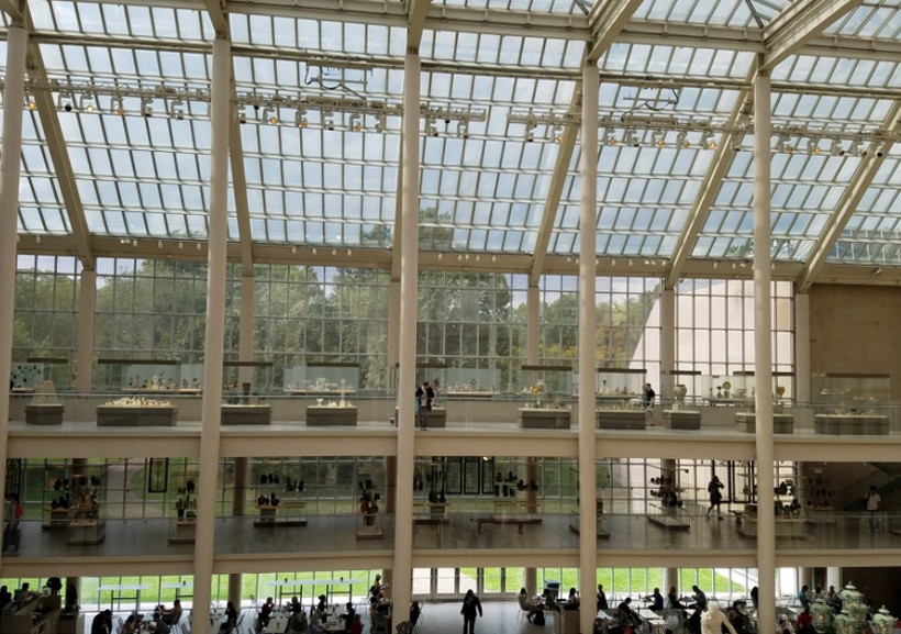 - Перекусить можно в одном из нескольких кафе, салатами и булочками. Они находятся на 1 и 2 этажах музея. На 4 этаже есть полноценный ресторан The Dining Room, средняя цена блюда в нем 25-50$. Также, на крыше музея есть смотровая площадка, где открывается вид на Центральный Парк и окружающие его районы города, и небольшой бар, открытый с Апреля по Октябрь.