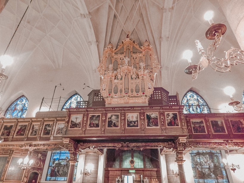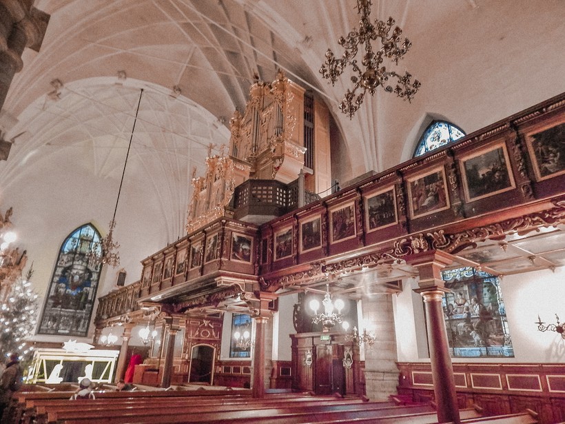 Если окажетесь поблизости, то обязательно включите посещение Немецкой церкви в свою прогулку по Старому Городу. Пусть она не такая грандиозная, как, например, Церковь Святого Николая, мне её камерная и уютная атмосфера по душе. Несмотря на то, что вход бесплатный, посетителей было немного. Можно спокойно посидеть на скамеечке, подумать о своём, а, если повезёт, ещё и послушать органную музыку. Между прочим, органные концерты, которые периодически устраиваются здесь, считаются одними из лучших в городе.