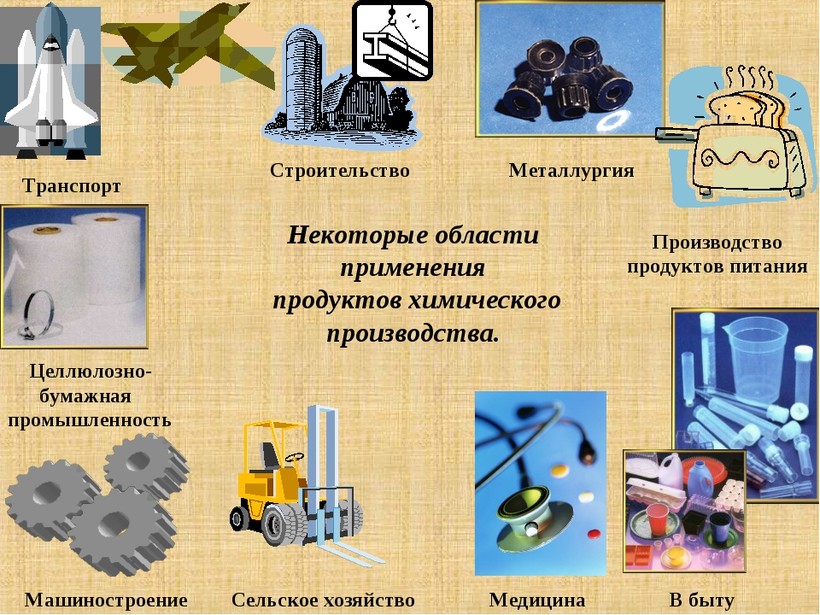Перечисление всех позиций просто заняло бы не одну страницу, поэтому лишь дам небольшой перечень того, чем мы пользуемся благодаря химической промышленности: лакокрасочными и резиноасбестовыми изделиями, полимерными покрытиями, теплоизоляционными материалами, химическими добавками к бетону, лекарствами, синтетическими моющими средствами, изделиями из пластмасс, химреактивами, чистящими средствами, синтетическими смолами, пластмассами и пр.