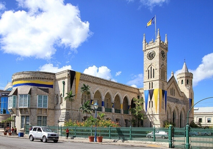 Португальцы и испанцы были первыми европейцами, высадившимися на Барбадосе, но колония здесь была образована силами Великобритании. Остров находился под ее контролем более 300 лет. Он был поделен на большие поместья, которые стали называть плантациями. Бриджтаун — столица Барбадоса, город построен с узкими улицами, похожими на те, что были в британских городах. Здания, имеющие историческую ценность, в Бриджтауне находятся в районе Гаррисон, а остальная часть города относится к современной застройке XX века. В самом центре города — Трафальгарская Площадь Героев и памятник адмиралу Нельсону, установленный здесь британцами. Поблизости можно увидеть: