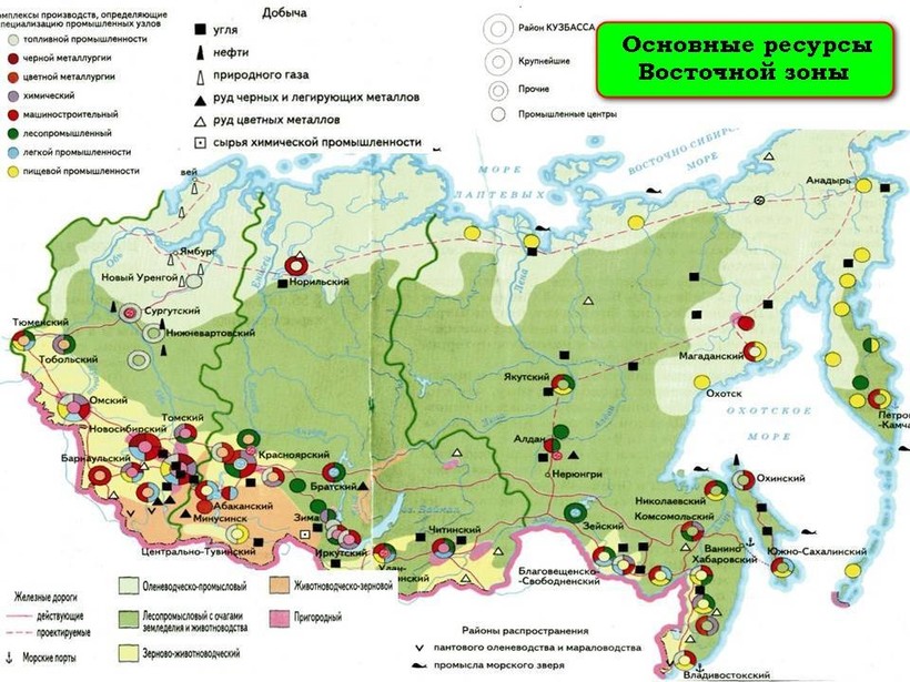 Но это только полезные ископаемые. Самые восточные области зоны богаты биологическими ресурсами — промышленный вылов морепродуктов ведется в Охотском и Восточно-Сибирском морях.