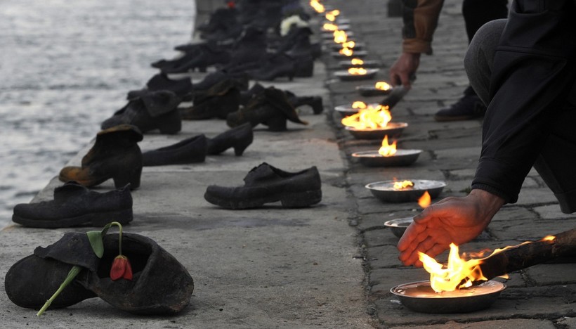 Евреи, мужчины, женщины, дети, сгонялись на набережную, их заставляли разуваться, загоняли на паромы и отправляли вниз по течению. Там их загоняли в воду и расстреливали. Растерзанные тела воды Дуная уносили прочь, избавляя нацистов от необходимости захоранивать трупы.