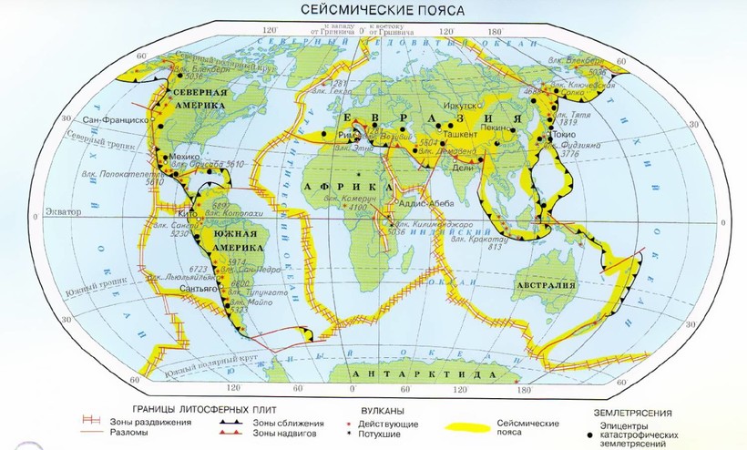 Вся тектоническая активность в литосфере сосредоточена по краям литосферных плит.