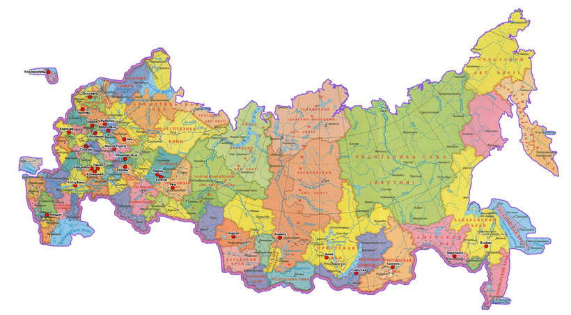 А вот естественная граница между Европой и Азией — Уральские горы, образовалась чуть позже, но они уже тоже старые и самые длинные в стране. Ещё во времена динозавров к России примкнула Чукотка и Сихотэ-Алинь — самые молодые горы, которые продолжают расти.