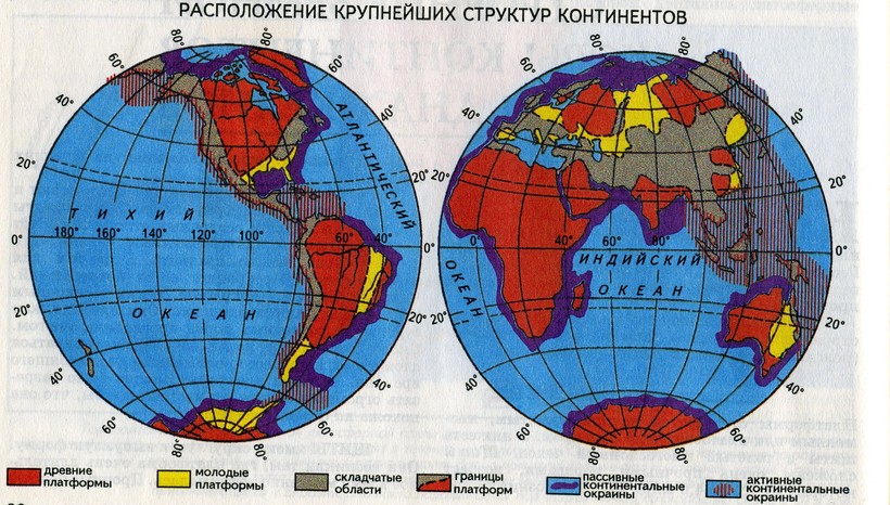 Древние платформы (их в западной литературе называют не платформы, а «кратосы») существуют еще с архейского периода. Являясь ядром литосферных плит, платформа занимает центральное положение в структуре материков.