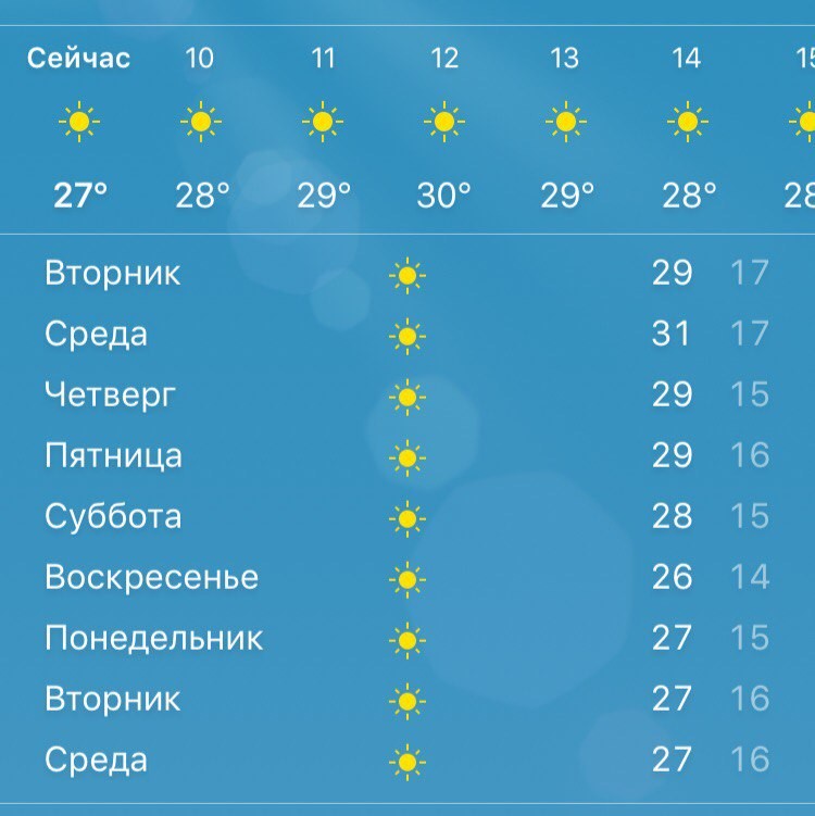 Если с началом сентября в принципе понятно, то дальше всё настолько неоднозначно, что писать что-то конкретное мне даже неловко. В этом году 10 сентября прогноз погоды на неделю был таким