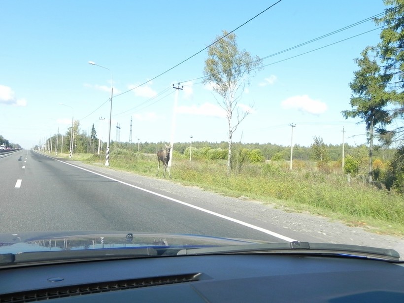 Дорога уже подходила к концу, как вдруг по дороге повстречался лось. Да, самый настоящий, вот он: