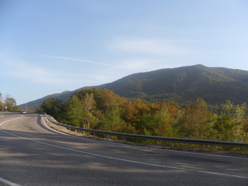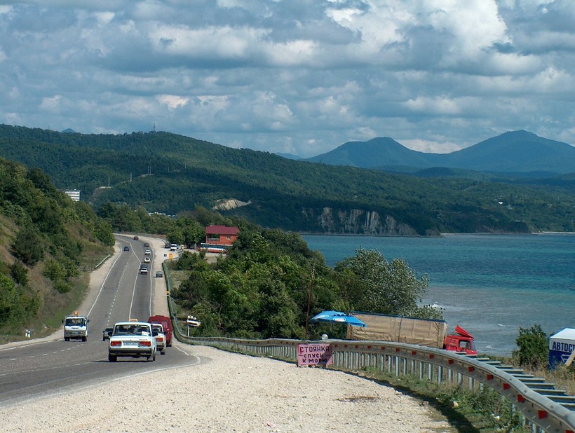 Что могу сказать - дорога просто отличная, станицы остаются немного в стороне и не надо сбрасывать скорость до 60 км/ч, есть даже участок автомагистрали. Сложность начинается на перевале, когда фуры еле ползут, а вам тоже тяжело их обогнать. Дорога вдоль моря почти вся ремонтируется, это немного нас затормозило, зато потом будет хороший асфальт. Заправок по дороге хватает, без бензина посреди трассы не останетесь.