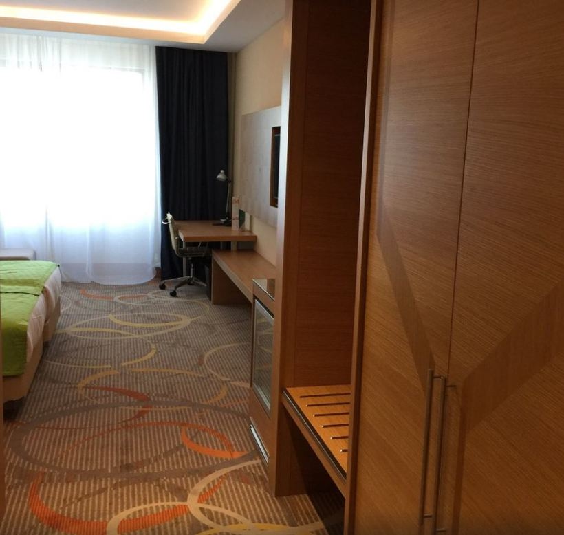 Приехали в 3 часа дня, на такси до отеля минут за 5. Лобби действительно дотягивает до уровня турецких отелей, а вот заселение опережает, видя, что мы с ребенком сразу выдали ключ от номера, муж потом спустился и все оформил. Номер отличный, две крупные кровати по нашей просьбе сдвинули вместе, чтобы и ребенка можно было положить, чайник, минибар-холодильник. К врачу мы попросились уже на завтра, устали, утром приняла нас Ольга Григорьевна, назначила, кому из какого источника пить и какие ванны принимать (в стоимость не входит).