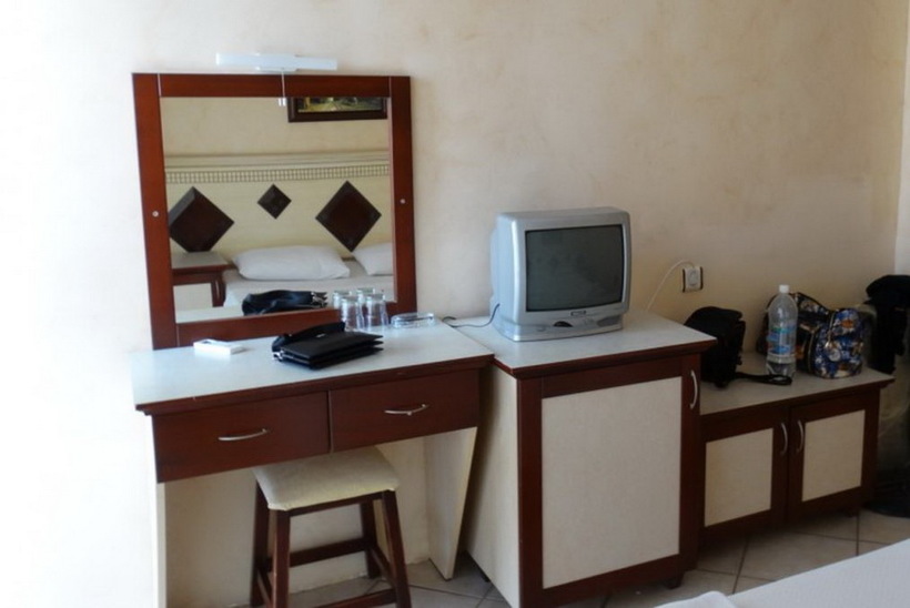 Сразу оговорюсь, отель не для тех, кто любит пошиковать, 3* говорят сами за себя. Заехали мы примерно в 23-00, оформили нас буквально минут за 15, предложили небольшой перекус в баре – отказались, устали. Номер с видом на море выдали на 3 этаже, 2-спальная кровать и вполне не тесно на оставшемся пространстве. Питание не сказать диетическое, больше вегетарианское, мясо 1-2 видов и рыба также не блистала разнообразием приготовления, пару раз не было ни того ни другого. Фрукты только яблоки и апельсины. Интернет платный и то не везде нормально принимает, вместе с сейфом заплатили 20$ за 2 недели.
