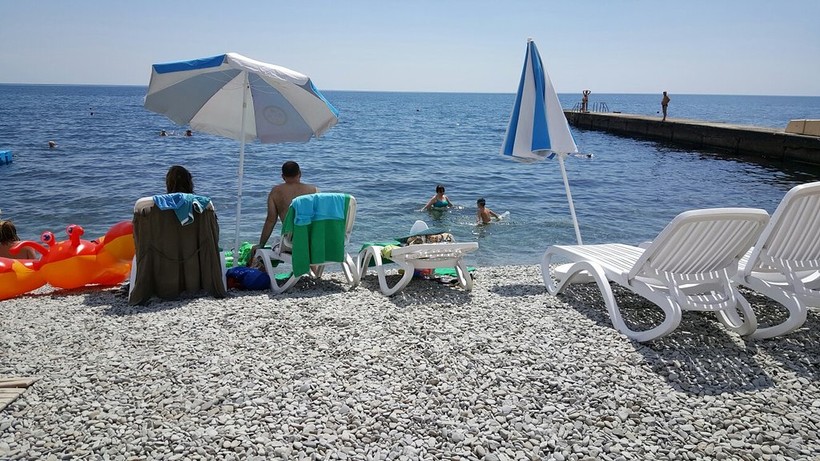 Чистое море, пляж, выдача полотенец, бесплатные напитки, навес, зонтики
