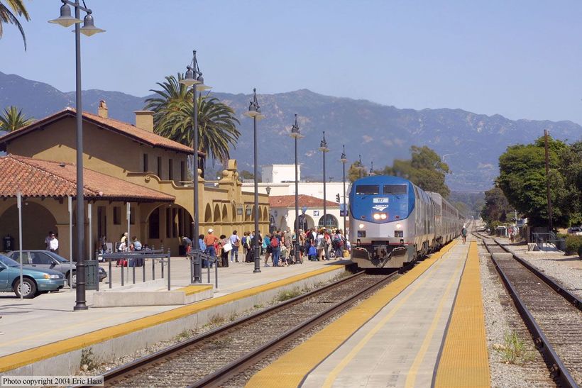 На поезде. Если вы хотите попасть в Санту-Барбару из другого города на общественном транспорте, лучше выбирайте железную дорогу – это и быстрее, и комфортнее. В городе есть станция – «Санта-Барбара Амтрак Стейшн» («Santa Barbara Amtrak Station»). Если я правильно поняла, Амтрак – это своего рода местный вид пригородных поездов (как у нас, например, сапсан или региональный экспресс). Сюда можно приехать на поезде из Лос-Анджелеса и из Сан-Диего. Железнодорожная станция находится совсем рядом со Стейт-Стрит, буквально минутах в пяти ходьбы.