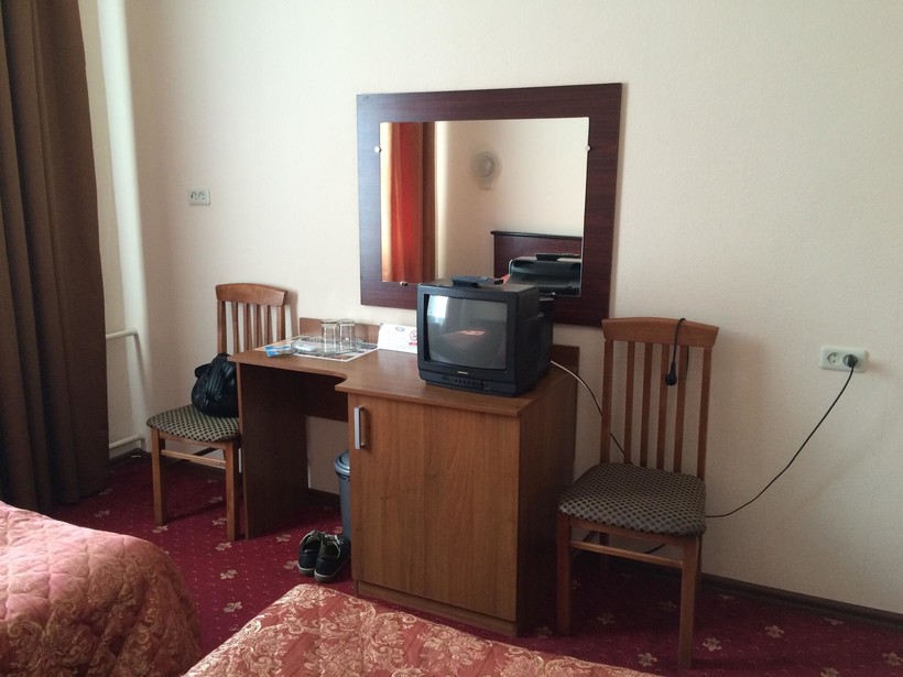 Не понравилось ,что в номере пошарпаная мебель(у стола отломан угол) отходящие обои, телевизор 37 см кинескопный, нет детского канала(даже карусели, хоть она и бесплатная), шкаф очень узкий курточки на плечиках входят с трудом, в комнате всего 2 настенных бра с энергосберегающими слабыми лампочками вечером темновато