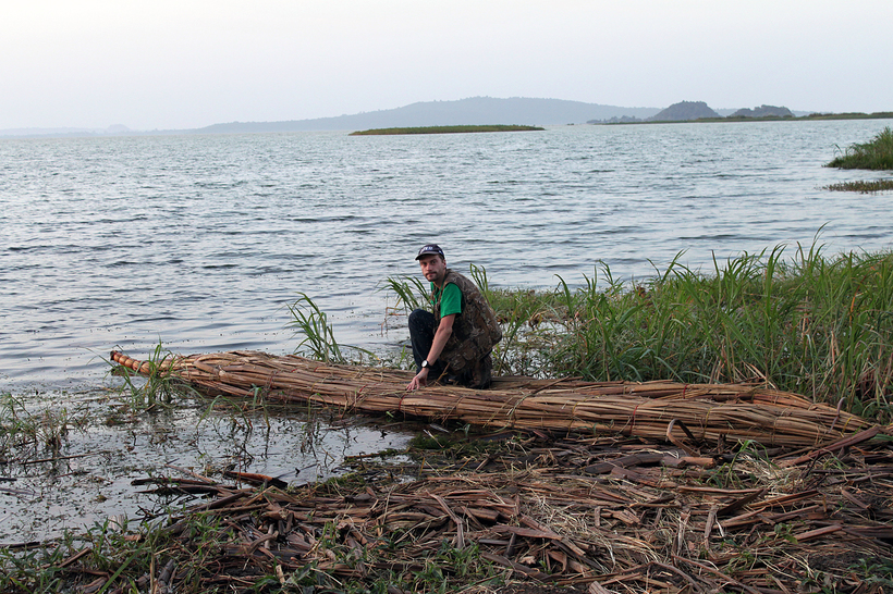 Обратите внимание на эти лодки, связанные из папируса. Их до сих пор делают здесь по технологиям Древнего Египта, и выглядят он так же, как и тысячелетия назад. Именно на такой папирусной лодке, только гораздо большего размера тур знаменитый Хейердал совершил свое отчаянное плавание через Атлантику. Естественно, я не мог устоять перед искушением и позаимствовал ненадолго такую лодку, чтобы прокатиться.