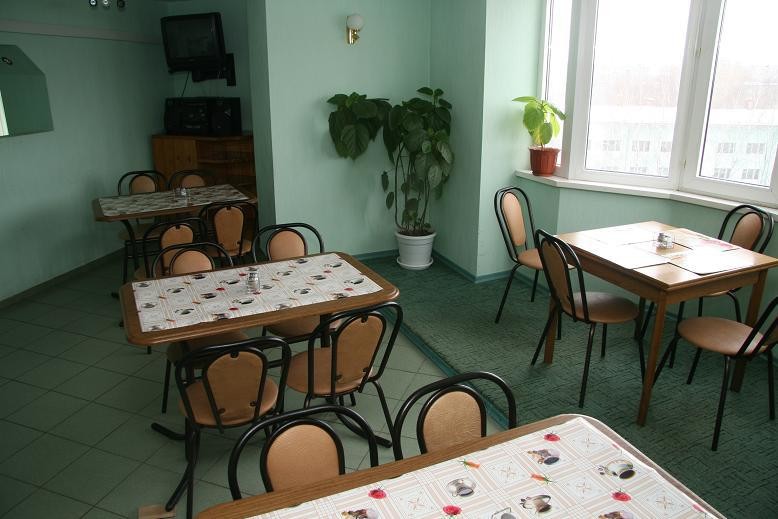 Расположение - практически центр, рядом 2-3 остановки автобусовБлок из двух номеров закрывался отдельной дверьюОтличная столовая на первом этаже (стоимость обеда 100-150 р, причем вкусного)
