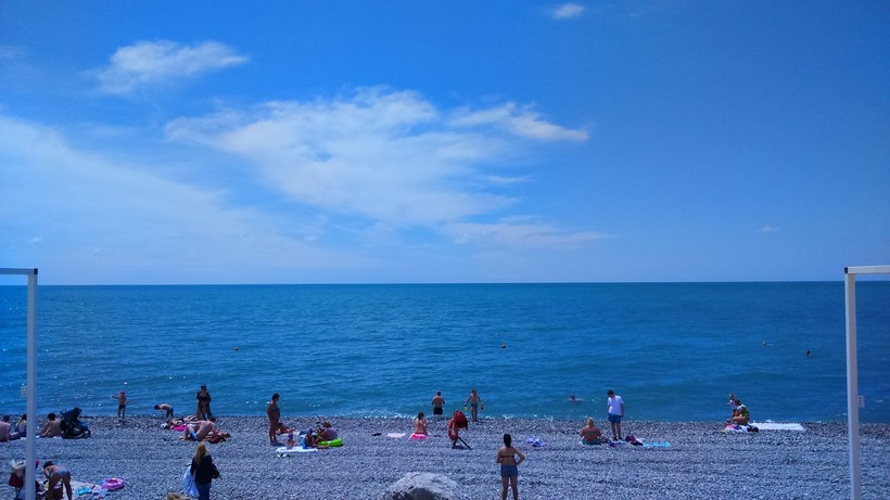 Пляж понравился, мусора не было, галька ровная без бугров и ям. Людей не много, а море красивое и чистое;)