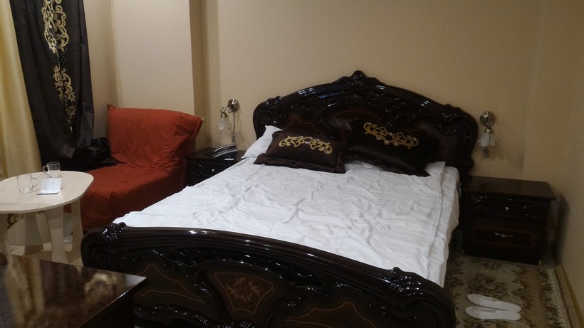и висящий криво по всем сторонам телевизор добавили изрядного негатива. Посмотрев на всю эту красоту, я расстроилась и мы пошли гулять по городу. Когда вернулись, в комнате стоял резкий запах сигарет, тянущийся из санузла. Этот факт заставил парня пойти на ресепшн с просьбой поменять нам этот прекрасный номер на что-то менее запоминающееся. Было сказано, что номеров нет, переселить нас некуда, хотя на сайте еще оставались свободные номера. Что я хочу сказать своим отзывом. Мне очень жаль, что отель с претензией на роскошный выглядит так неопрятно. Если вы делаете номер со стразиками на подушках и шторах, следите, чтобы они не отваливались, это перечеркивает все усилия. Если в окно не попадает свет, а мебель темного цвета, что создает сумеречный эффект, об этом стоит предупредить, и не надо ставить в эту комнату невписывающиеся морковное кресло, это может ранить чувство прекрасного.