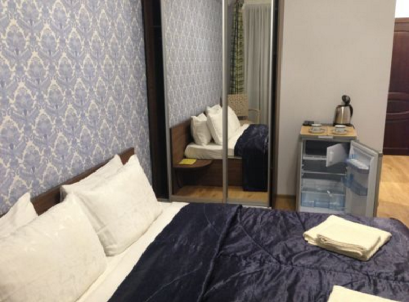 Расположен отель в конце набережной, до моря пара минут, до ближайшей остановки минут 20, именно поэтому стоит определиться. Номер уютный, комфортный и опрятный, есть холодильник, телевизор, кровать просто вышка. Что касается тапочек, халатов, гелей и прочего, то все это в номере было. Для похода на пляж выдают пляжные полотенца.