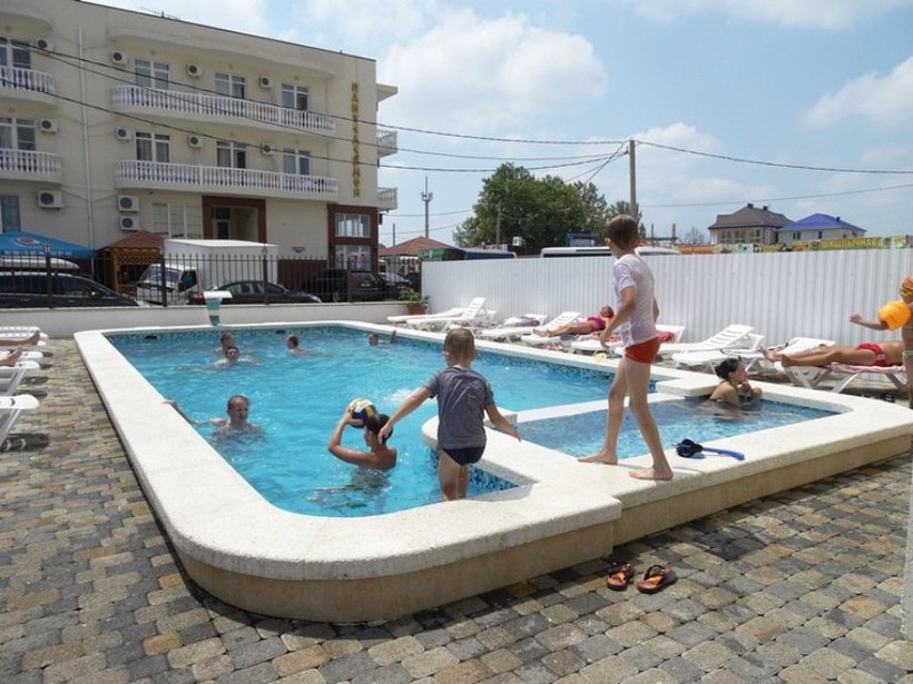 Шумоизоляция в номере средняя, в первую ночь было слышно как в соседнем номере, на повышенных тонах, общаются соседи. Окна были с видом на море. Хозяева Ольга, Илья Иванович и их дочь Янис, оказались очень приветливыми людьми, особо что впечатлило, то что нас встретили в аэропорту и отвезли в отель бесплатно. Столовая особо не впечатлила. Ассортимент блюд был невелик, но цены приличные. На территории гостевого дома находился открытый бассейн, средних размеров, с относительно теплой водой, детей с него не вылезали.