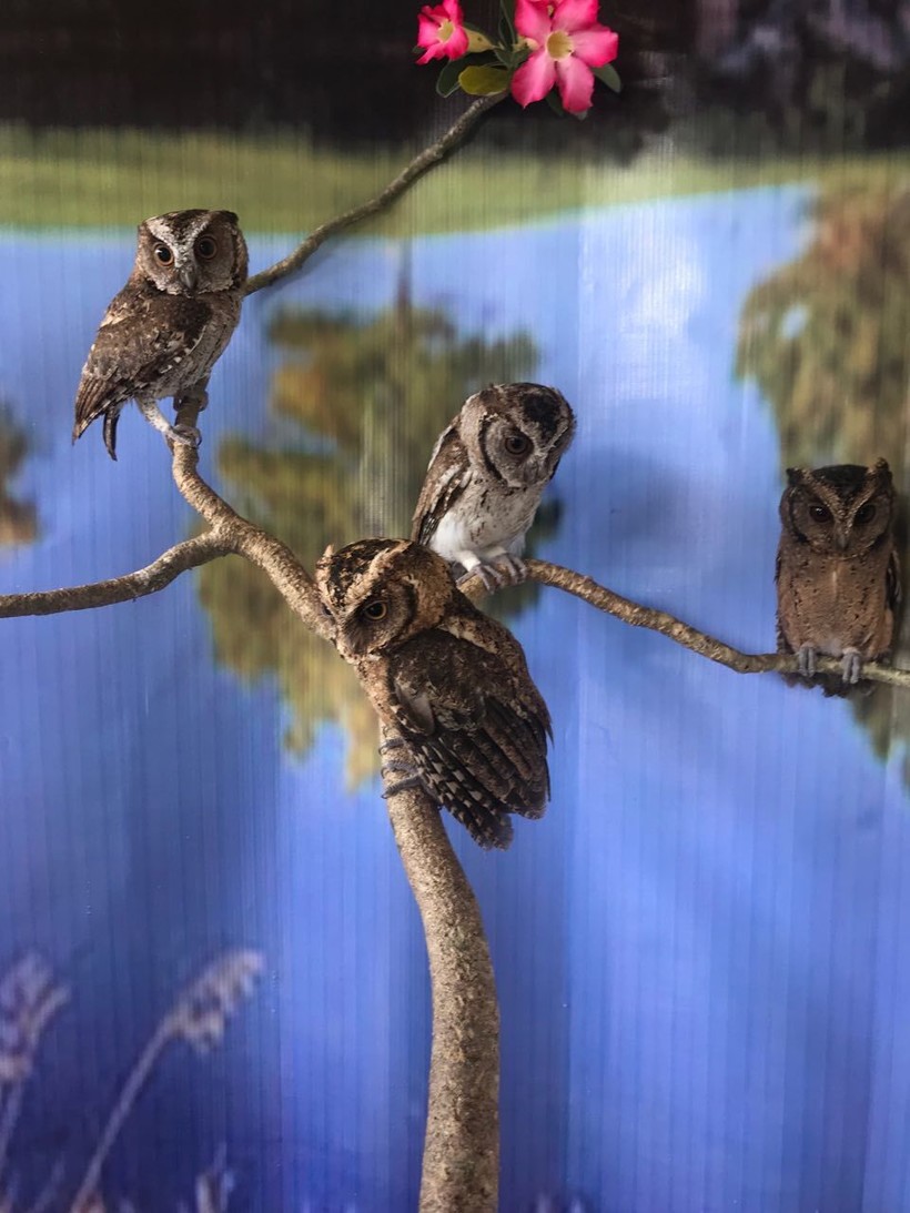 Вот кадр с телефона, чудесные совушки, от маленьких пушистых (которые сидели в коробке рядом) до таких вот почти взрослых))