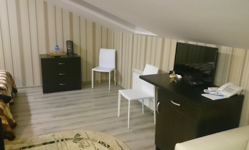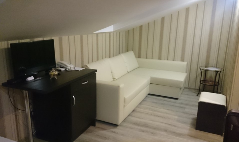 С женой и друзьями бронировали номера в этом отеле в начале июля. Из минусов я бы отметил пару моментов: в одном из номеров немного подтекала вода в ванной, ну совсем немножко. Из-за моего высокого роста я постоянно бился о головой об потолок на цоколе (это на третьем этаже).
