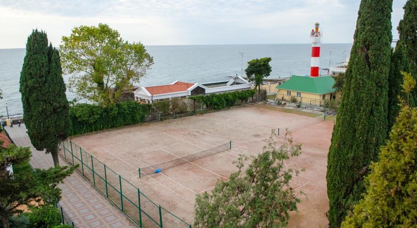 Удобно что у отеля собственная парковка за воротами и теннисные корты