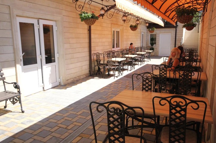 Прямо во дворе гостевого дома вкусная столовая
