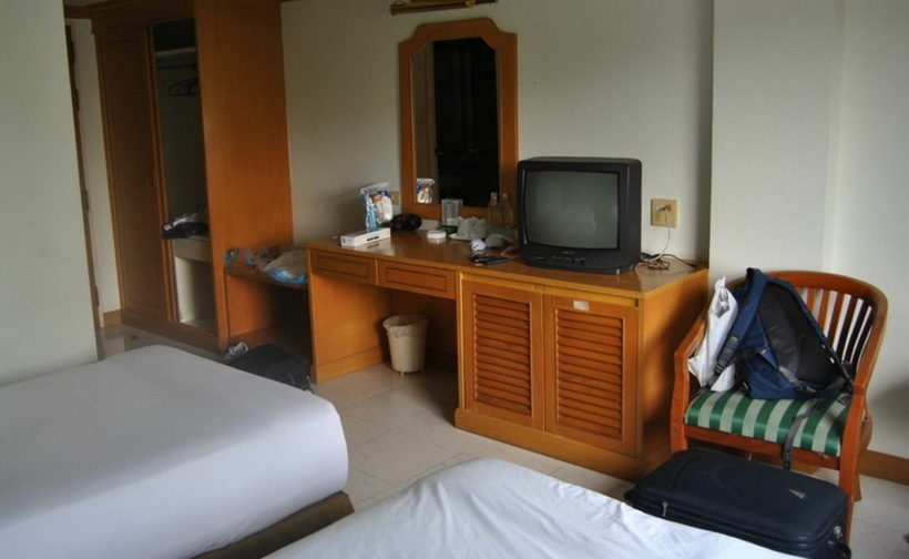 Номер нормальный, мебель не первой свежести, но и не сильно обшарпанная. Чайника нет, на ресепшене большой нагреватель с кипятком. Две односпальные кровати, старый телевизор (в отдельных номерах замечали плазму), убирают хорошо, регулярно.