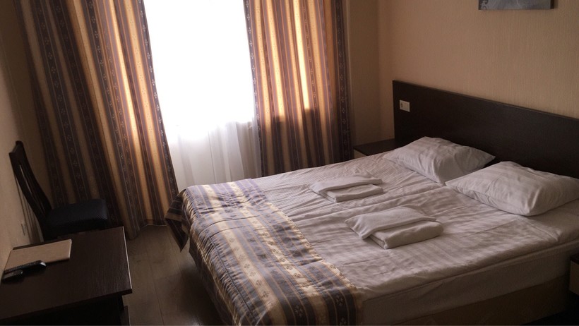 Зайдя в номер он не переставал удивлять от ужасного запаха до "интерьера", вся мебель ужасно старая, от матрасов, а точнее от пружин торчащих из матраса на утро болели бока, кровати скрипучие, белье рваное, одеял нет