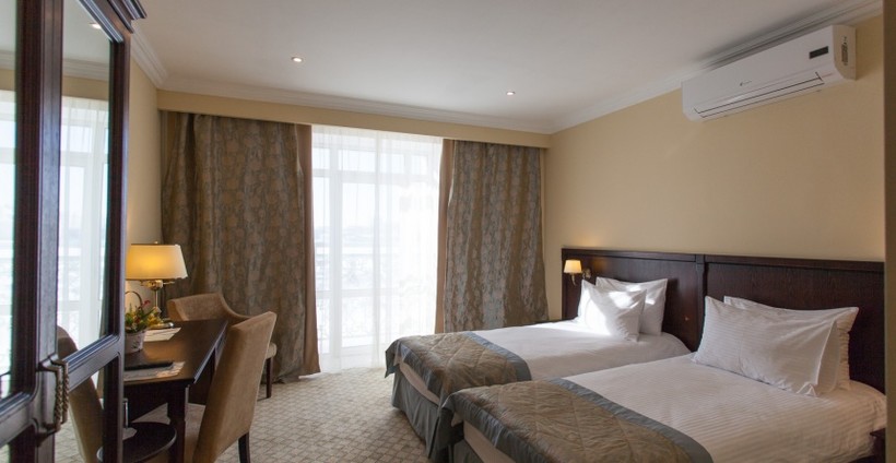 У нас был угловой номер с панорамным видом (большая часть окон смотрела на противоположную от главного входа в отель сторону, но был виден и парк с озером Кабан)