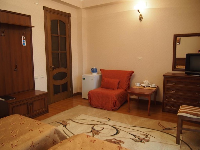 Парковка во дворе, быстрый WiFi, чистота и порядок, гостиница 3 года в эксплуатации, небольшой холодильник, кабельное ТВ, соотношение цена/качество (если бронировать заранее и не в самый жаркий сезон), комфортно и удобно, если приехать компанией - можно делать шашлыки и ужинать во дворе за высоким забором (правда до тех пор, когда рядом не заселят многоэтажку)