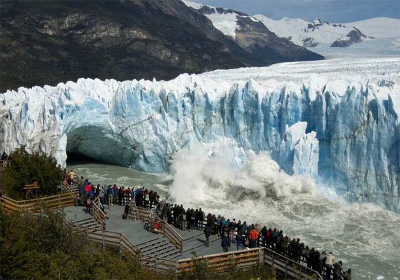 Со временем под давлением воды арка с грохотом обрушивается вниз и большой поток воды вырывается, наполняя вторую половину озера. Обычно это природное шоу происходит раз в 4-5 лет, но последние годы раз в два года. Накануне было много дождей и из-за обрушения озеро впервые вышло из берегов и затопило ближайший городок Эль Калафате.