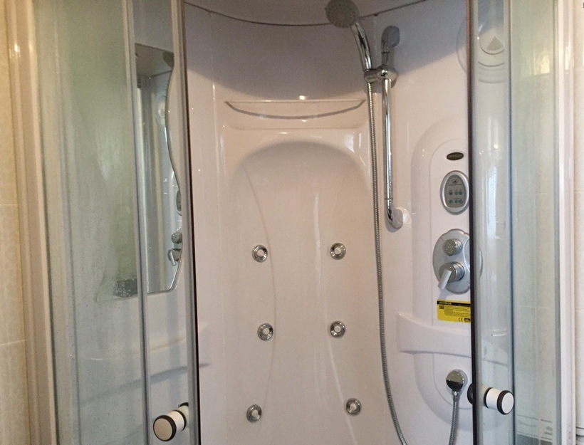Честно сказать, думали заезжаем в какие трущобы — возвышенность и везде стройки, по самому отелю еще местами видно недоделки. Хотели разворачиваться уже и ехать в другое место, но хозяин уговорил зайти хоть глянуть. Зашли и обомлели, внутри-то действительно великолепно. Прошли в номер, блин действительно красиво, но я морда наглая, я цену еще на 200 рублей у хозяина сбила, за расположение и поиски (на бензин, так сказать). Честно сказать еще одним решающим моментом стала суперская душевая кабинка, домой такую хочу!