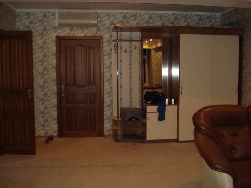 Комната полулюкс была огромная, но не совсем уютная -мебель очень скудная, нет на кафельном полу ни одного ковра или хотя-бы прикроватных ковриков в комнате, шкафа для семьи точно мало -макс на одного человека (или переночевать на 1-2дня), кроме стаканов нет ни тарелок ни столовых приборов ни чашек для чая при том что чайник и холодильник есть
