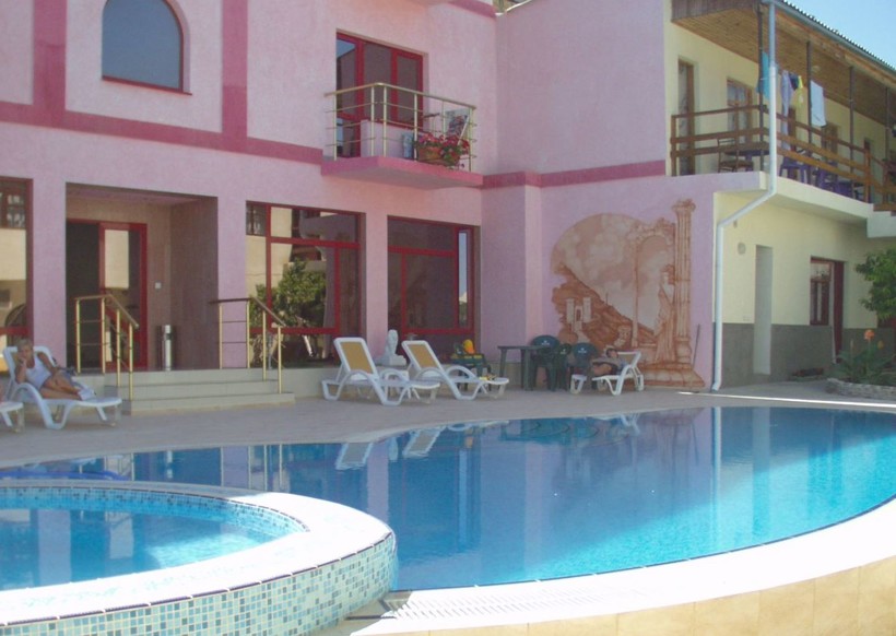 Отдыхали двумя семьями в июне-июле 2017 года. Хотим сразу сказать, что люди мы непривередливые, заоблачных требований к проживанию не предъявляем. Но моменты, о которых мы хотим написать, не оставили нас равнодушными. Обо всем по порядку.1. Номер. Он, конечно, очень просторный, вместительный, уютный. Но! В туалетной комнате ужасно громко работает вентиляция, это мешало отдыхать днем и взрослым, и детям. Кроме того, ОЧЕНЬ сильный запах канализации, который ощущался даже в комнате при закрытой двери в туалет! Были перебои с водоснабжением. В номере хотелось бы видеть электрочайник и фен и элементарные средства гигиены: мыло, шампунь, стиральный порошок для ручной стирки (услуга машинной стирки платная).2. Бассейн. Холодная вода даже в детском бассейне. Не верьте рекламе отеля о системе очистки бассейна! Наблюдали лично, как он очищается! Хозяин плошками высыпал в бассейн средство, очень напоминающее хлорку, после чего по территории отеля распространялся сильный запах этой самой хлорки (см.фото). После такой обработки бассейном нельзя было пользоваться несколько дней (а если люди всего приехали на неделю да еще и в шторм на море попали?). Детский бассейн часто был ОЧЕНЬ мутным! Хозяин делал замечания и взрослым, и особенно детям в отсутствие взрослых об отдыхе в бассейне: нельзя плескаться (не дай Бог хоть капля воды упадет за пределы бассейна), кричать в дневное время суток, играть с брызгалками и мячами. Режим работы бассейна не совпадал с заявленными правилами. 3. Кафе. В нем уютно, вкусно, но очень дорого! В городе можно поесть в два раза дешевле. 4. Общая кухня. Очень неуютно на общей кухне, не помешало бы сделать ремонт (хотя бы косметический). На кухне нет моющих средств и спичек для приготовления еды. Такое ощущение, что спички убирались специально, чтоб отдыхающие не готовили, а питались в кафе при отеле. На кухне всего один чайник: и для персонала, и для отдыхающих! В своих целях хозяин отеля на несколько дней закрыл общую кухню, что вызвало неудобства и недовольства большинства отдыхающих.5. Отношение хозяев отеля к отдыхающим. В первую очередь, хочется отметить яркий негатив хозяина отеля к детям: делает замечания в грубой форме ; причем замечания детям делаются в отсутствие взрослых. Если же в зоне видимости находятся взрослые, то отдается приказ подчиненным. Еще одним минусом является то, что хозяева отеля не предоставляют документ об оплате проживания (многим требуется на работе или в налоговой о возврате денежных средств). Хорошее отношение хозяин отеля проявляет только к тем, кто пользуется услугами, предоставляемым хозяином отеля; в этом случае он закрывает глаза на все нарушения.6. В отеле "гуляют" насекомые! Последней каплей нашего терпения во время отдыха стала обработка отеля химикатами без предупреждения отдыхающих! Это привело к плачевным последствиям: детей рвало, тяжело было дышать, вставал вопрос о вызове скорой помощи (родители испугались за жизнь и здоровье детей). А хозяева отеля сказали :"Ничего страшного, это не опасно!" Извинения после этого случая ,конечно, были принесены, но не хозяевами отеля, а администратором...Несмотря на все эти минусы, хочется отметить хорошее отношение обслуживающего персонала: часто убирались номера, качественно; менялось белье и полотенца, всегда чистая и ухоженная территория. Очень привет