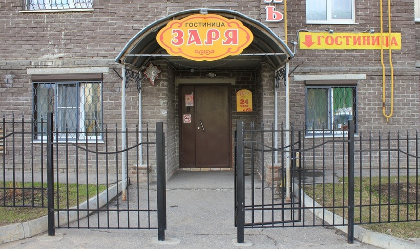 Со стороны улицы невозможно увидеть название гостиницы (есть вывеска "Гостиница", но без названия)
