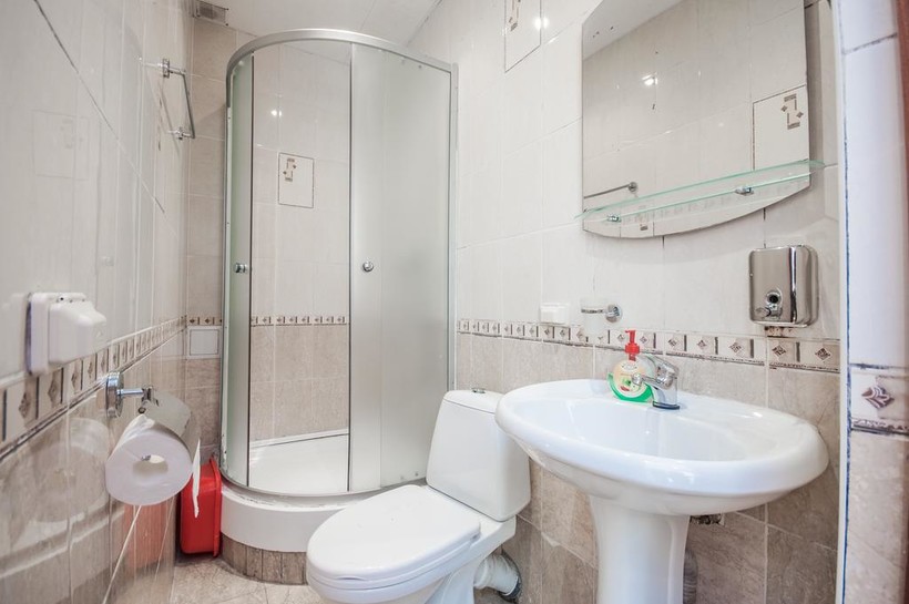 Сам душ отличный, "лейка" большая, мыться удобно) На стене металлическая труба - можно нажать на кнопочку сбоку и она будет как батарея) В ванной было только жидкое мыло, но зубные и мыльные принадлежности у нас свои был