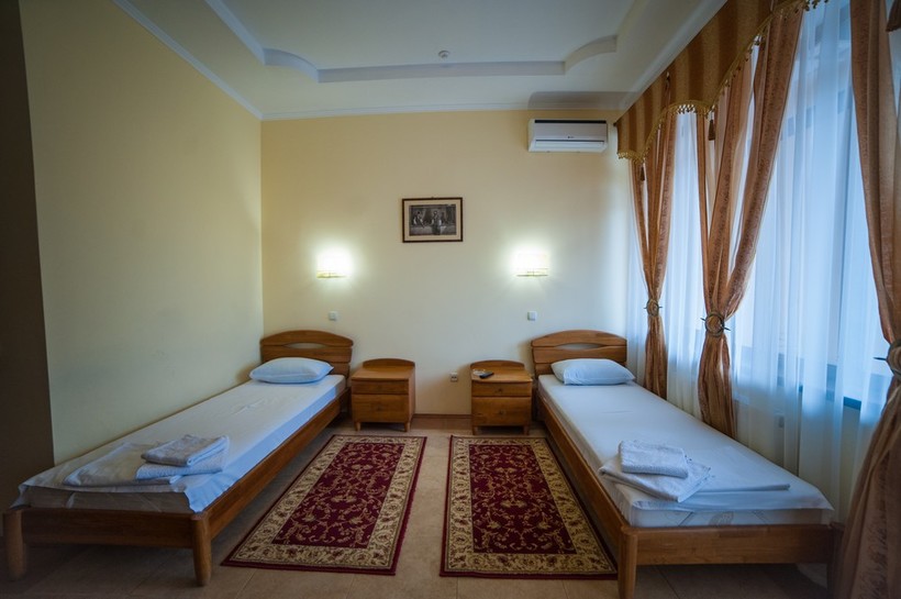 Номер мы брали с двумя отдельными кроватями. Понравился неплохой дизайн, наличие телевизора, кондиционера, вайфая, тумбочек, не старого постельного белья. В ванной комнате все было рабочее и чистое, лишь немного «пахло» канализацией. Стиралки нет, но можно воспользоваться услугами прачечной за небольшую плату.