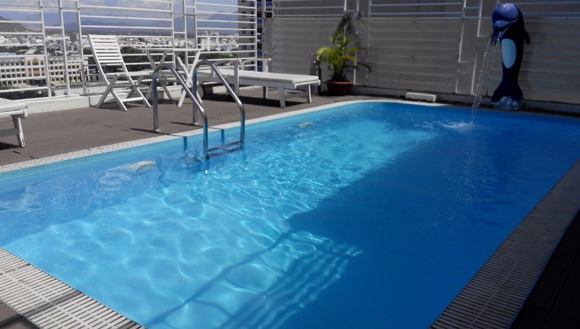Бассейн маленький и мелкий, но на крыше, вид с него неплохой