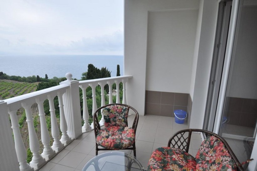 Очень чистый комфортный номер с просторной террасой и прекрасным видом на море, горы, виноградники