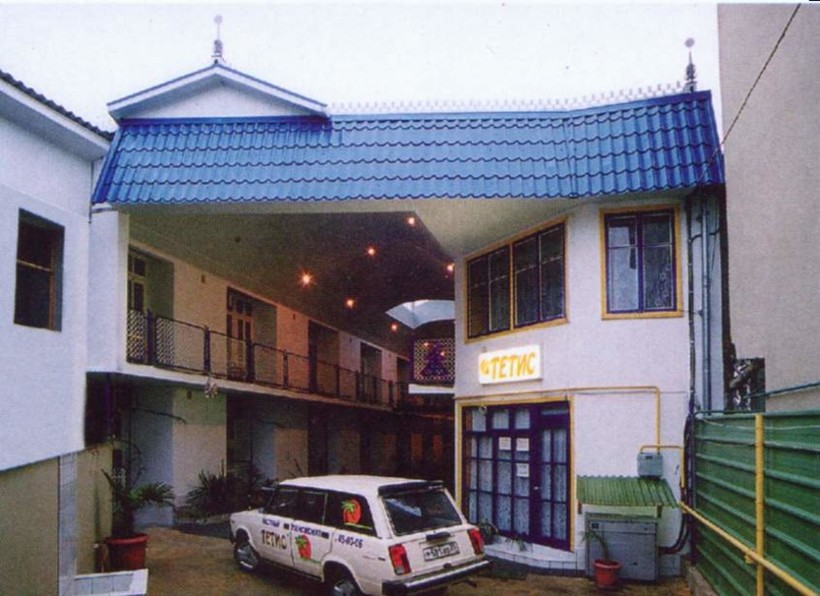 В районе гостиницы одни гостевые дома, есть магазины маленькие, какие-то столовые, но даже смотреть в их сторону страшновато) Нормальных кафе поблизости не видели