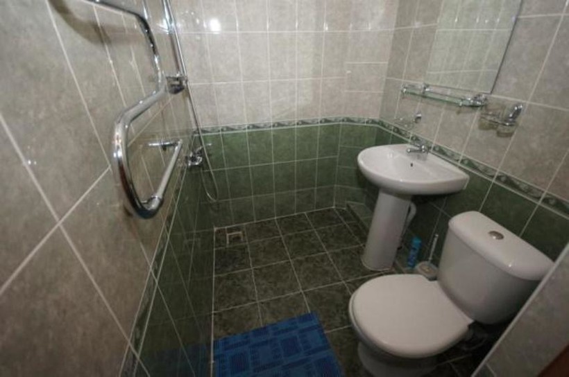 В туалете все время сыро, так как нет бортика у душа, освещение плохое, нет фена