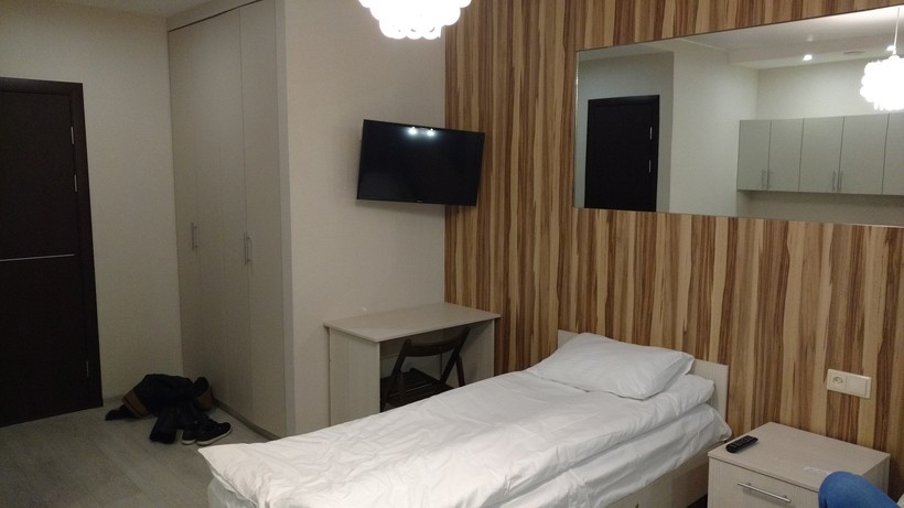 Номер чистый, кровать удобная, есть телевизор и бесплатный интернет