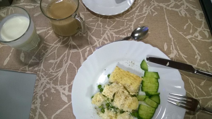 . На завтрак сарделька + тушеная капуста + творог со сметаной