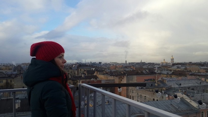 Нагулялись, замерзли,спустились этажом ниже в ресторанчик «Зеленая комната»перекусить и отогреться. И снова вернулись на крышу , так как подруга не хотела уходить.