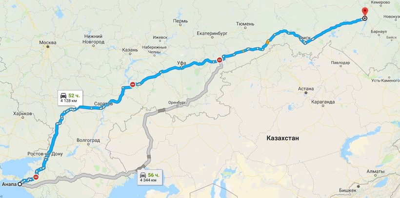 Длинное путешествие на автомобиле из Анапы в Новосибирск