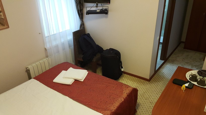 Поначалу были недопонимания, так как я хотела номер для некурящих и чтобы была большая кровать, но такого не было, и в итоге заселили в тесный номерок с жестким матрасом, но потом я подумала, что это же Россия и спасибо на этом, но спала плохо.