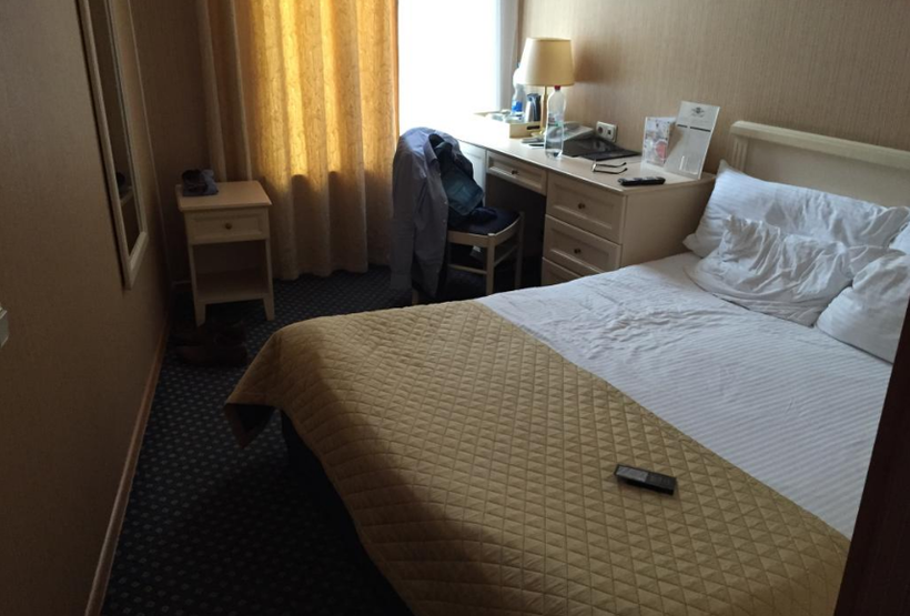 В командировке оплатили отель Астон, номер стандарт, думал как обычно, маленький номерок, слабый сервис. Отчасти был прав, номер действительно маленький (метров 20 кв.), большую часть номера занимала кровать, был столик стул, зеркало (обычный набор). Сам отель неплох, потолки высокие, такой царский стиль.