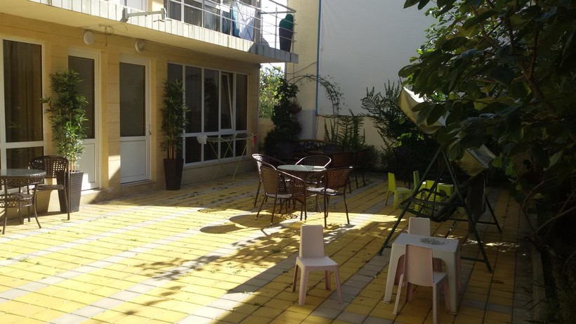 В гостевом доме есть терраса на крыше и во дворе. Также во дворе есть столики, стулья и подвесное кресло. Я жила на первом этаже и мне мешали шумные компании, которые сидели в этом дворике. В номере все новое, чистота. Я отдыхала 3 дня. За это время уборки не было. В номере жарко из-за пола с подогревом, приходится держать окна открытыми. Сетки на окнах нет, поэтому меня ели комары. Что еще не так в номере: